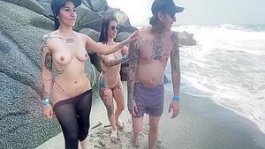 Hot Scene: Two Bitches Fucking A Lucky Guy On The Beach 19 Min